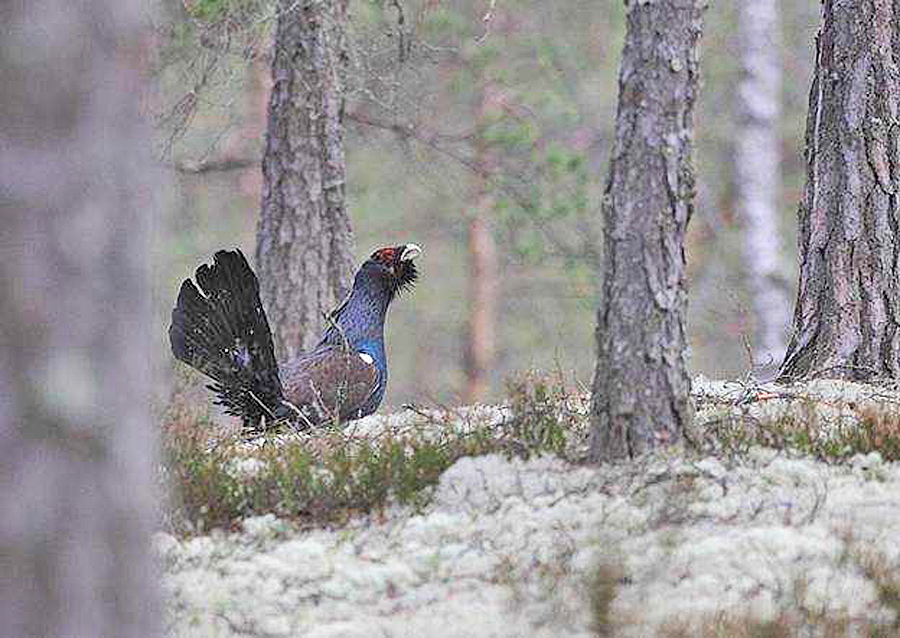 Nous restons dans l’abri jusqu’à 8 heures du matin. Un grand tétras passe encore en vol. Une petite balade nous permet d’apercevoir un grand corbeau, un autre mâle de grand tétras et un furtif pygargue. Nous quittons l’endroit plus que comblés !!!